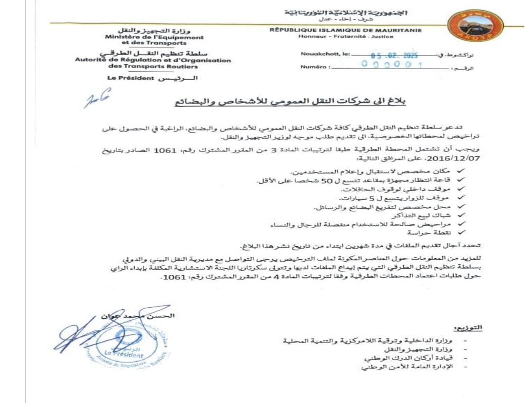 حددت سلطة تنظيم النقل الطرقي شروط الحصول تراخيص للمحطات الخصوصية لكافة شركات النقل في بلاغ صادر عنها أمس الجمعة.