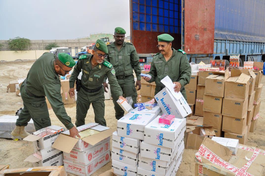 ضبط أفراد من مركز الجمارك التابع لمكتب البحث والتدخل GIR حمولة شاحنتين من مواد تجميلية ومكملات غذائية قادمة من الشمال لم تدخل عن طريق المعابر المحددة من طرف الدولة الموريتانية.
