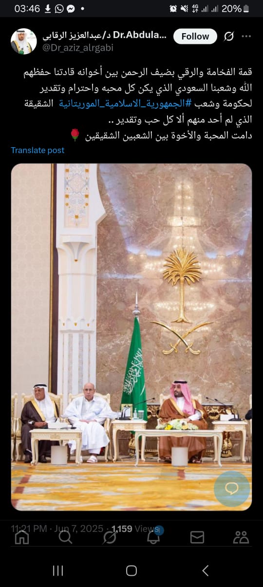 أقام سعادة السفير السعودي بموريتانيا، الدكتور عبدالعزيز بن عبدالله الرقابي الليلة البارحة في مقر السفارة الجديد، حفل عشاء فاخر بمناسبة عيد الأضحى المبارك، على شرف موظفي البعثة السعودية والسعوديين المقيمين في الجمهورية الاسلامية الموريتانية.