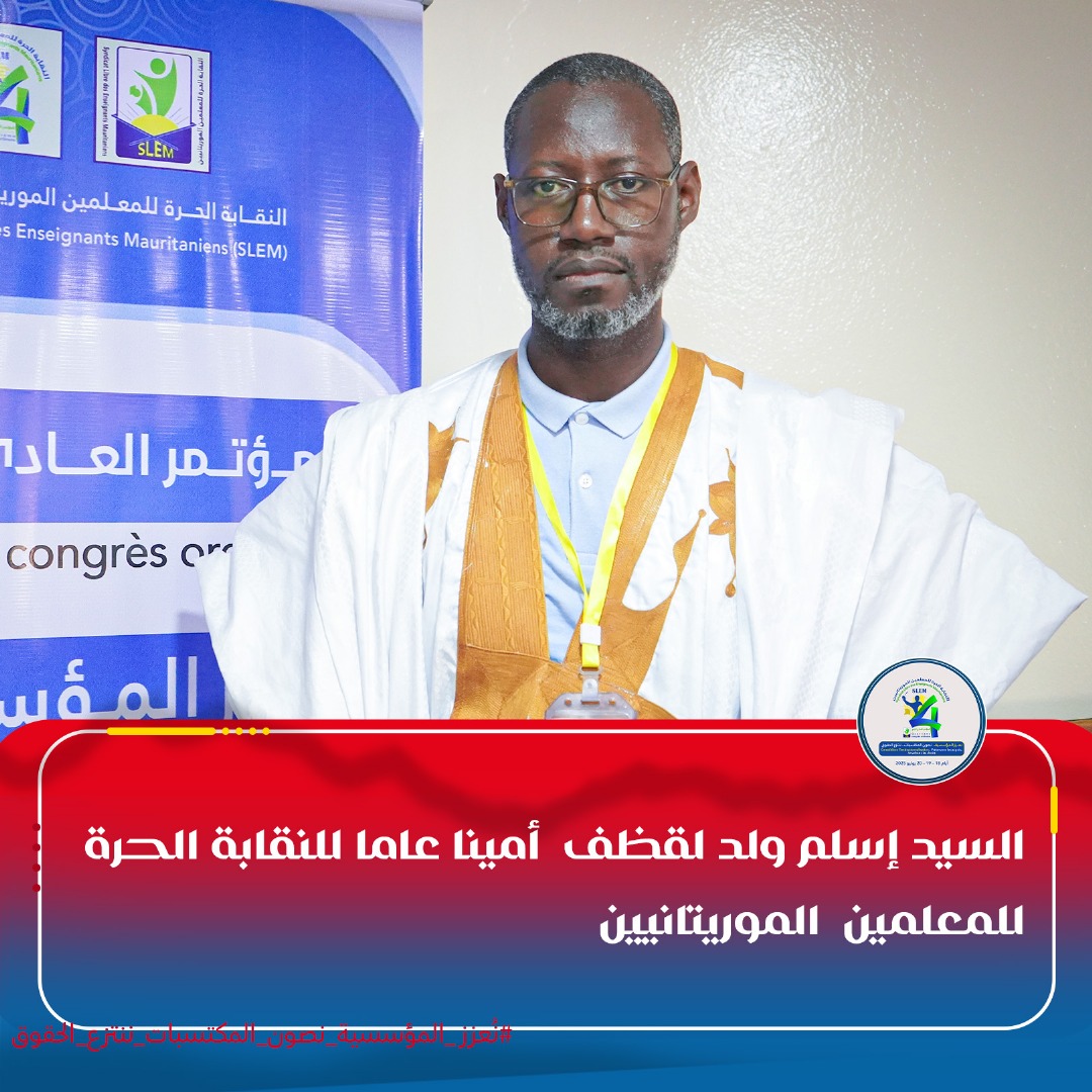 أعلن مكتب المؤتمر العادي الرابع للنقابة الحرة للمعلمين الموريتانيين عن انتخاب السيد: إسلم ولد الأغظف أمينا عاما جديدا للنقابة.