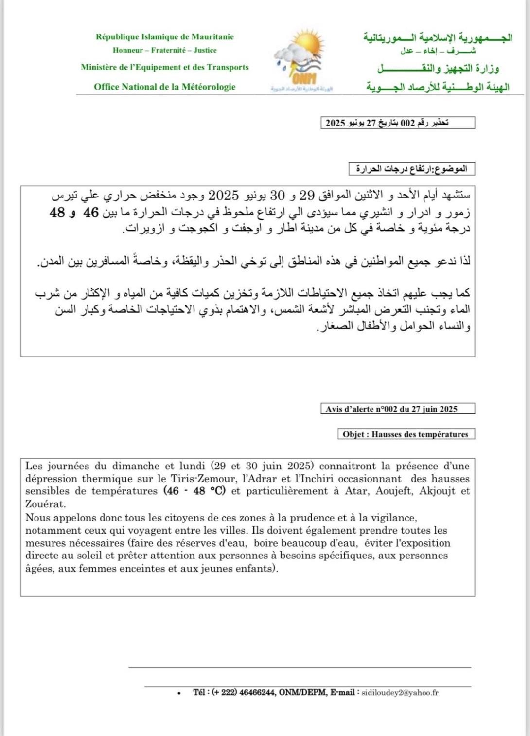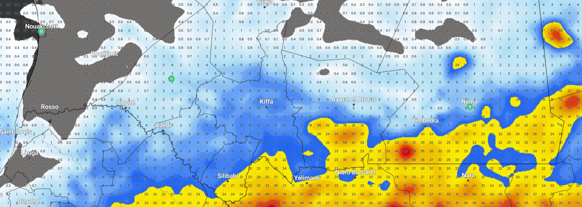 سجلت مصلحة الاتصالات الإدارية بوزارة الداخلية واللامركزية، تساقطات مطرية خلال الأربع والعشرين ساعة الماضية، على مناطق متفرقة من ولايتي الحوض الشرقي والحوض الغربي، وذلك على النحو التالي:
