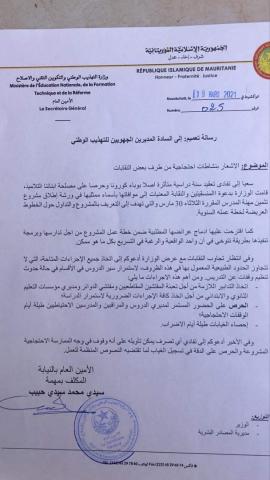 وجاء تعميم الوزارة عقب دعوات وجهتها عدد من الهيئات النقابية لتنظيم إضراب شامل في مؤسسات التعليم الأساسي والثانوي ابتداء من يوم غد الاثنين.