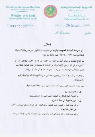 أعلنت مدرسة الصحة العمومية بكيفه عن تنظيم مسابقة لتكوين ممرضي وقابلات دولة.