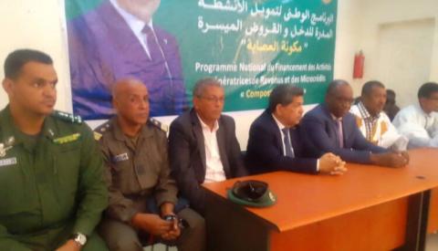 أشرف الأمين العام للتضامن الوطني و مكافحة الاقصاء تآزر السيد صمبه أفال أمبارك، رفقة والي لعصابه السيد عبد الرحمن ولد الحسن، اليوم الخميس بدار الشباب في مدينة كيفه على إنطلاق البرنامج الوطني لتمويل الأنشطة المدرة للدخل والقروض الميسرة الخاصة بولاية لعصابه .