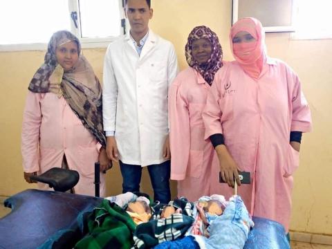 ونظرا لانخفاض وزن التوائم تم نقل السيدة وتوائمها للمركز الصحي بالنعمة، وهم الآن بصحة جيدة ويتلقون العناية والرعاية اللازمة.
