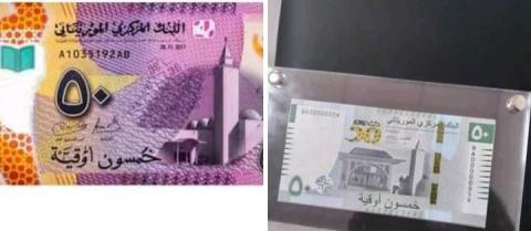 أنشأ البنك المركزي الموريتانيا ورقة نقدية من فئة 50 أوقية جديدة يبدأ تداولها ابتداءً من يوم الأحد القادم 18 يونيو الجاري. و أعلن البنك المركزي الموريتاني اليوم الخميس نيته اتخاذ خطوات وصفها بـ"الهامة" خلال الأيام المقبلة، وذلك في إطار ذكرى مرور 50 سنة على إصدار الأوقية كعملة وطنية.