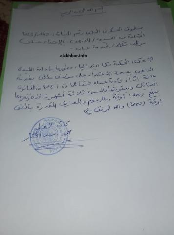 أدانت محكمة ولاية آدرار اليوم الليمه بنت الداهى بالسجن ثلاثة أشهر نافذة، وغرامة 100 ألف أوقية جديدة، وبالمصاريف التي قدرتها بـألفي أوقية، وذلك بجنحة الاعتداء على موظف مكلف بخدمة عامة أثناء عمله.
