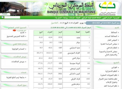 سعر الأوقية الموريتانية مقابل العملات الرئيسية منتصف مارس الماضي وفق البنك المركزي الموريتاني