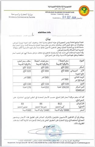 كشف الوزير الأول المختار ولد اجاي مساء اليوم خلال استعراض برنامج حكومته أمام البرلمان عن اتفاق وقعته حكومته اليوم يقضي بتخفيض أسعار العديد من المواد الأساسية.