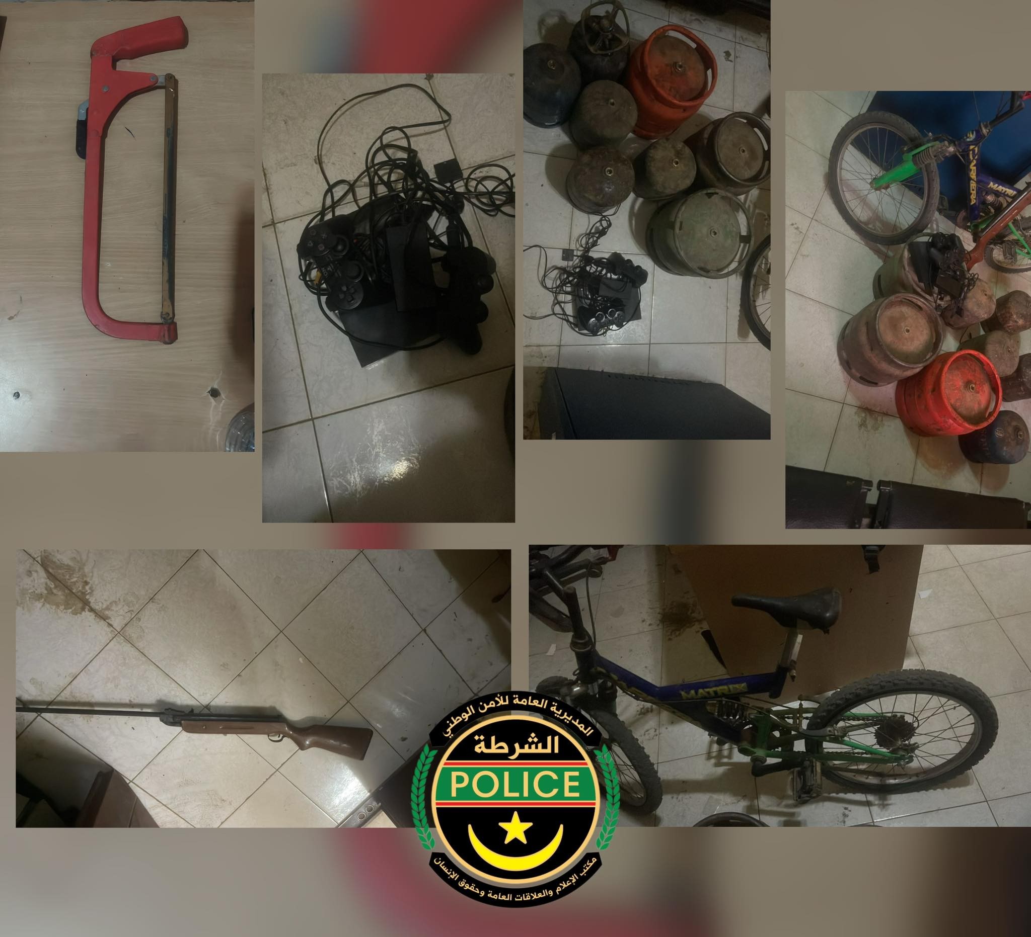 وحسب البيان من بين ما تم ضبطه، مجموعة من علب الغاز مختلفة الأحجام، وسلاح ناري نوع كارابين، ودراجة هوائية، ومجموعة من أجهزة العاب الفيديو، وعطور وساعات وبعض الملابس ".