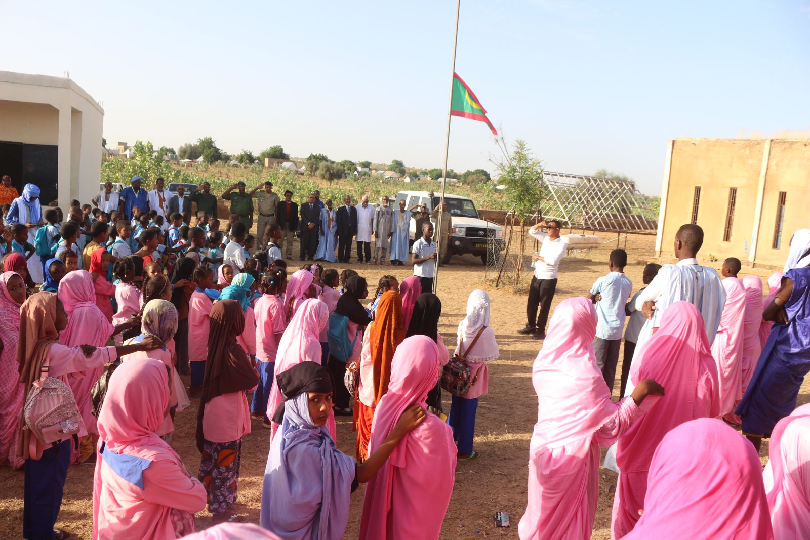 و حضر الحاكم رفقة عمدة بلدية ساني المساعد احمد طالب ولد عبدي و مفتش المقاطعة للتعليم الأساسي يسلم ولد عمار و مفتش التنمية الحيوانية محمد ولد يحي و السلطات الأمنية و العسكرية مراسم رفع العلم الوطني على أنغام النشيد الوطني في مدرسة ساني كما تفقد سير الدروس قبل أن يؤدي زيارة لإعداية ساني و النقطة الصحية بها.
