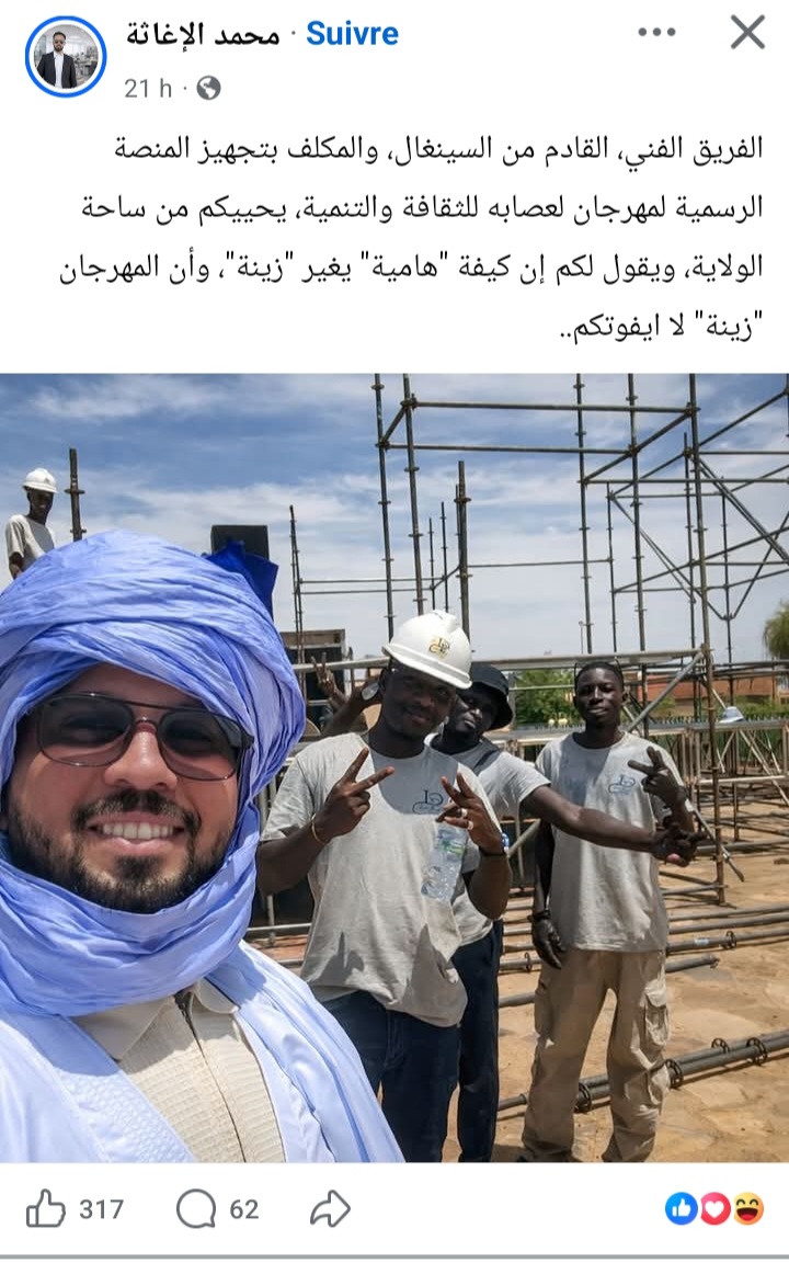 و نشر عضو اللجنة صورة له ، على حسابه بالفيسبوك، مع الفريق السنغالي داعيا الجميع لحضور المهرجان.