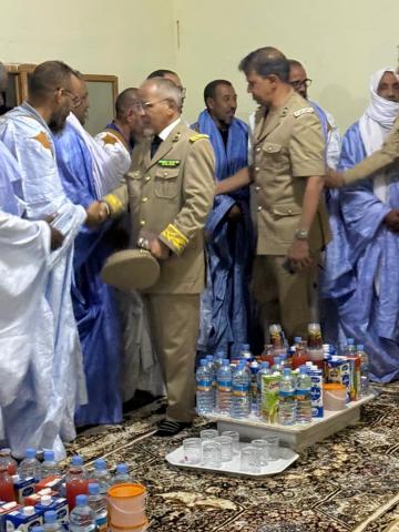 رافق الوالي خلال تقديم التعازي حاكم مقاطعة كيفه عالي احمدو الحسين وعمدة بلدية كيفه السيد جمال ولد كبود والسلطات الإدارية والأمنية في الولاية.