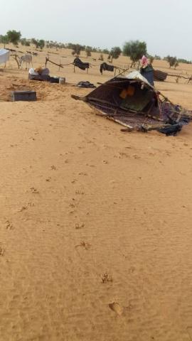 وبحسب النشرة اليومية الصادرة عن وزارة الداخلية الموريتانية فقد تم إحصاء 60 عريشا سقطت بالكامل في أنحاء المقاطعة.