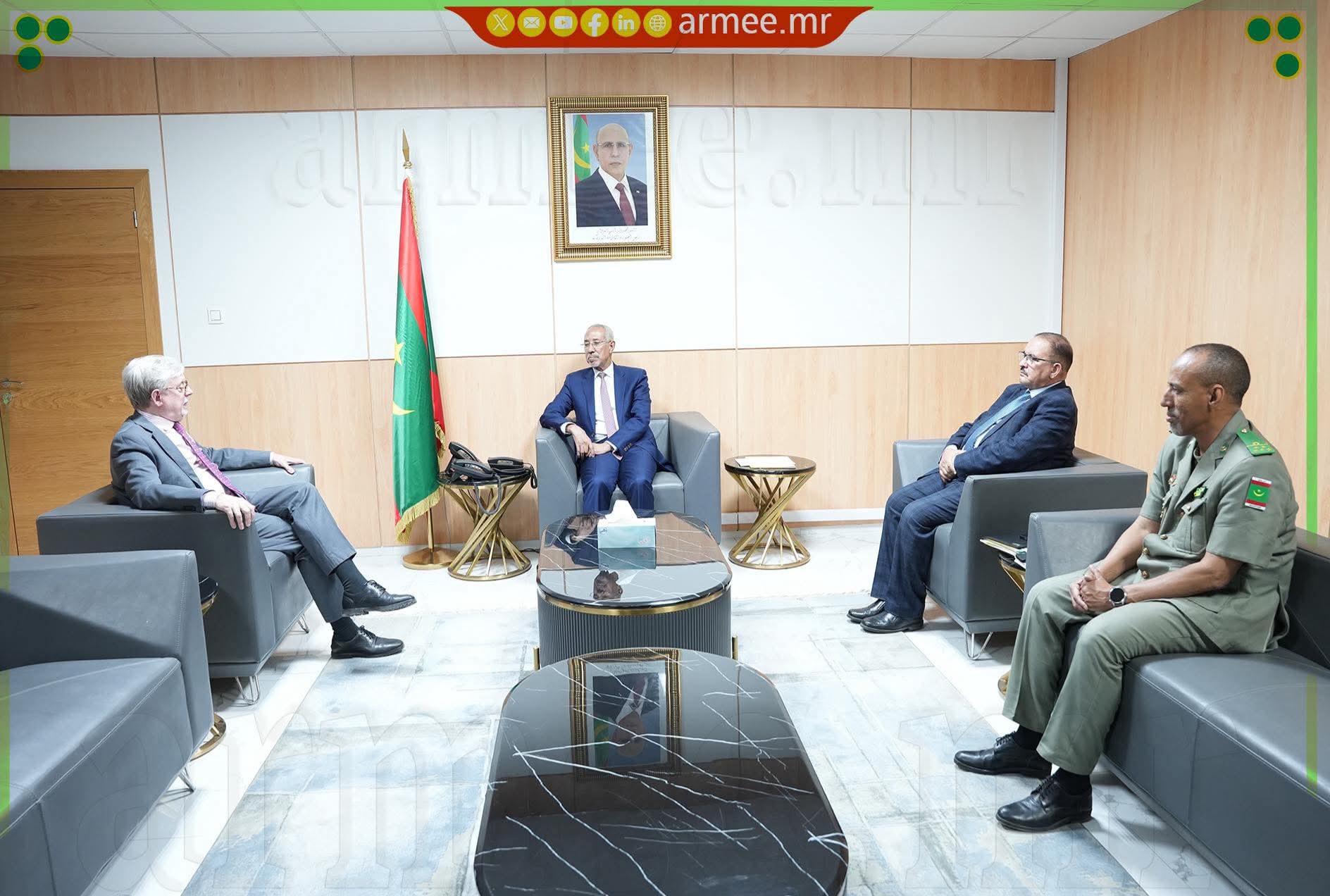 بحث وزير الدفاع، حنن ولد سيدي، اليوم الثلاثاء في نواكشوط، مع سفير الاتحاد الأوروبي المعتمد لدى موريتانيا، اخواكين تاسو فيلالونغا، سبل تعزيز التعاون الثنائي في المجالين الأمني والعسكري.
