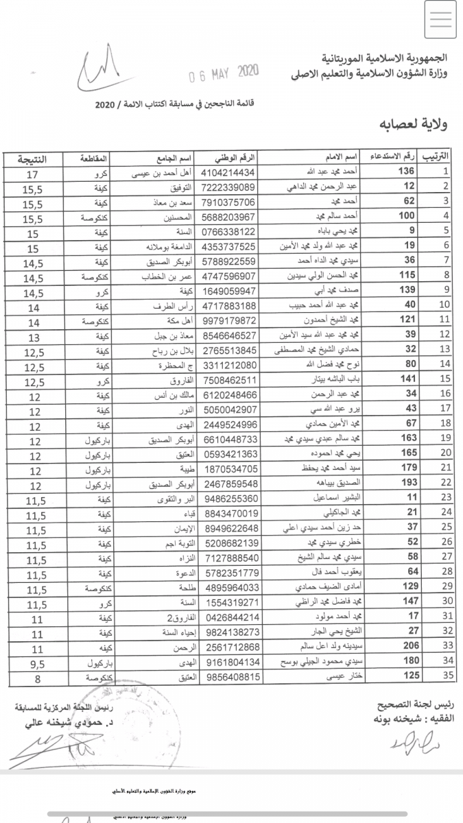 علمنا ببالغ الحزن والأسى في كنكوصه اليوم بوفاة الوالدة آصه بنت الشيخ بن النهاه التي وافاها الأجل المحتوم اليوم بالعاصمة انواكشوط.