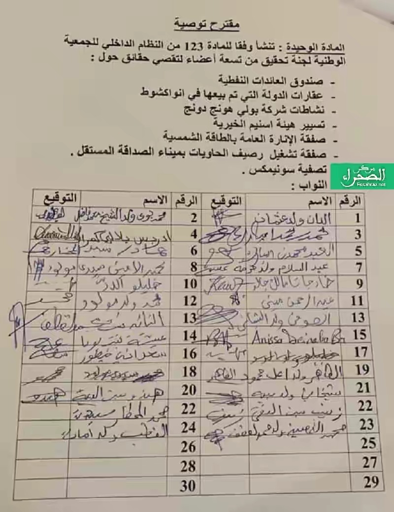 وقع 24 نائبا برلمانيا على مقترح توصية بإنشاء لجنة تحقيق لتقصي الحقائق حول جملة من المشاريع والصفقات التي عرفتها فترة حكم الرئيس السابق محمد ولد عبدالعزيز.