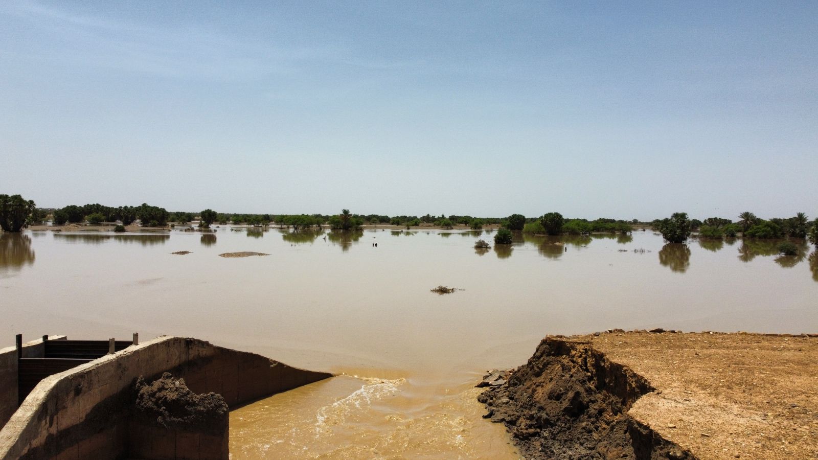 و إحدثت السيول فتحه بعرض عدة أمتار في السد الذي أعلن قبل أيام انتهاء أشغاله للمرة الثانية خلال عام، كما أحدثت تشققات في أرضيته المحيطة.