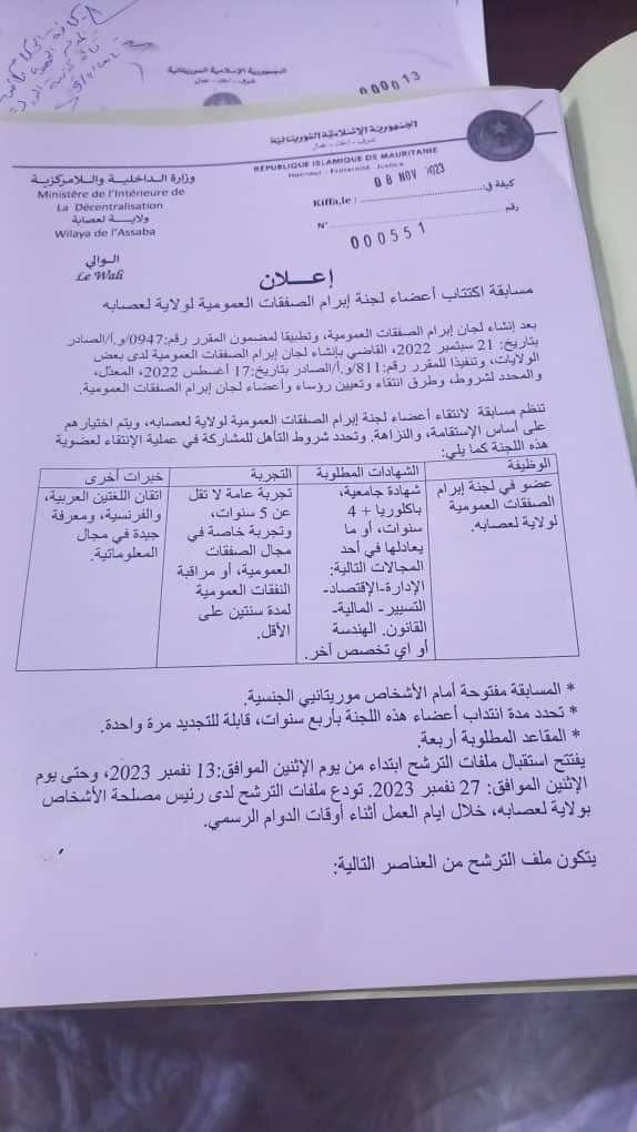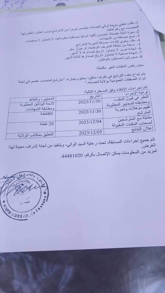 أعلنت ولاية لعصابه عن مسابقة لانتقاء الملفات  لاكتتاب أعضاء لجنة إبرام الصفقات العمومية بالولاية.