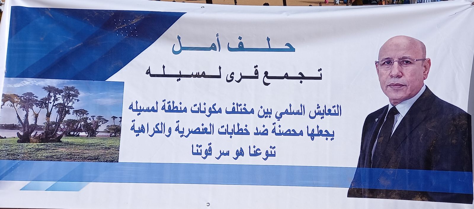 و قال رئيس حلف أمل إن سكان تجمع لمسيلة يضم عددا كبيرا من القرى و التجمع في ولايتي لعصابه و كيدي ماغا و قد عانى خلال الفترات الماضية من التهميش و نقص الخدمات رغم ما تحقق من إنجازات ملموسة خلال مأمورية الرئيس محمد ولد الشيخ الغزواني الحالية و هو ما شكل أملا - يضيف ولد امبارك - في تحقق مطالبهم مما جعلهم يتمسكون بترشيحه و دعمه كخيار وحيد و مصيري.