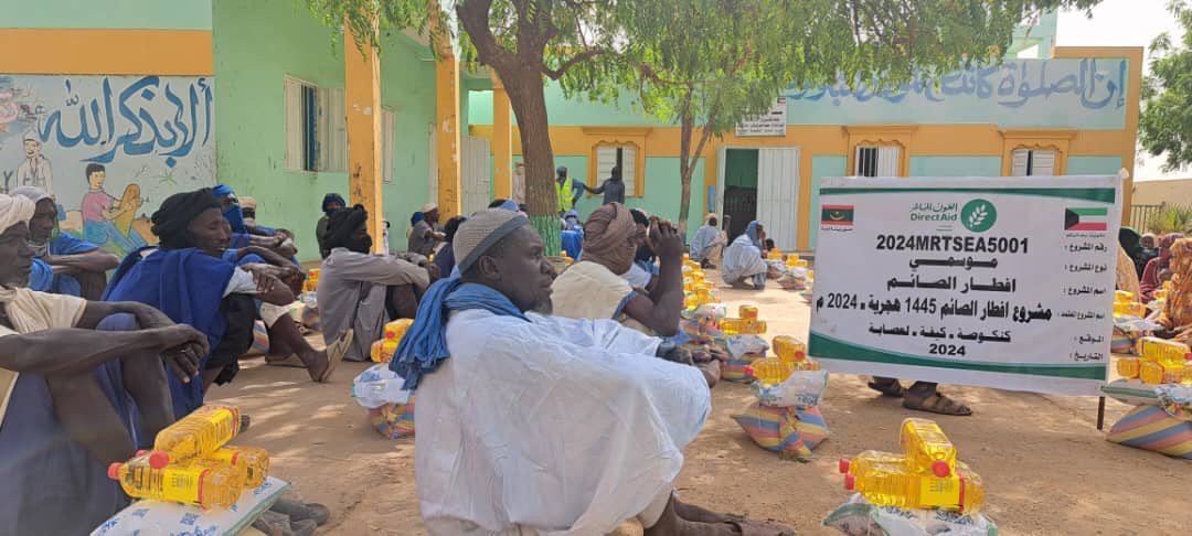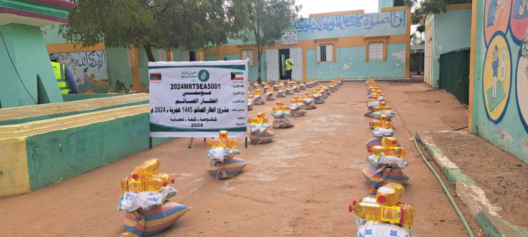 و تم توزيع السلات الغذائية بالتعاون مع السلطات الإدارية و المحلية ببلديات كنكوصه و هامد و تناها إضافة إلى قريتي حاس بگره و لعوينات بمقاطعة ولد ينجه كما شمل التوزيع بعض المساجد تحتوي السلة الواحدة على كمية من الأرز و الزيت و السكر.