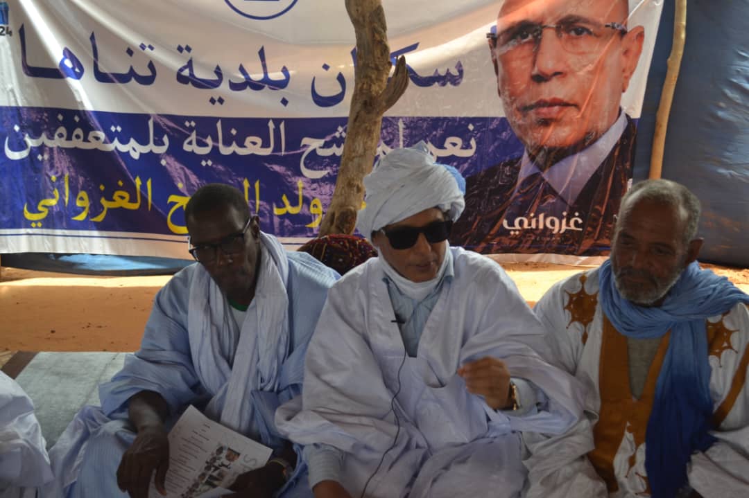 عمدة بلدية تناها السابق احمد فال ولد باب رحب بالحضور و شكر السكان على الاستقبال كما ذكر بمواقف المنطقة السابقة في التصويت بكثافة لولد الشيخ الغزواني مطالبا بإعادة الكرة هذه المرة و بشكل أكبر.
