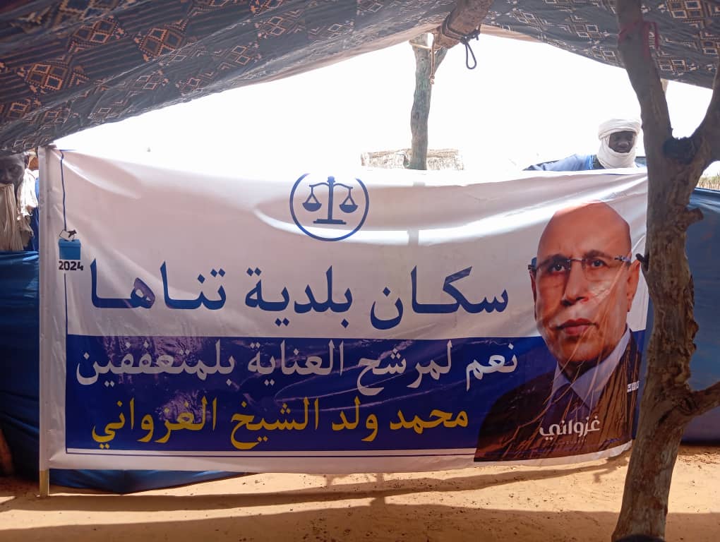بدا وفد من حلف العدالة و المساواة بقيادة نائب رئيس الحلف عمدة بلدية بلاجميل ابراهيما گلى با رفقة القياديين بالحلف المستشار بجهة لعصابه محمد محمود ولد سيدي ولد بناهي و العمدة السابق لبلدية تناها احمد فال ولد باب، صباح اليو جملة في بلدية تناها للتعبئة و التحسيس بالتصويت المرشح محمد ولد الشيخ العزواني.