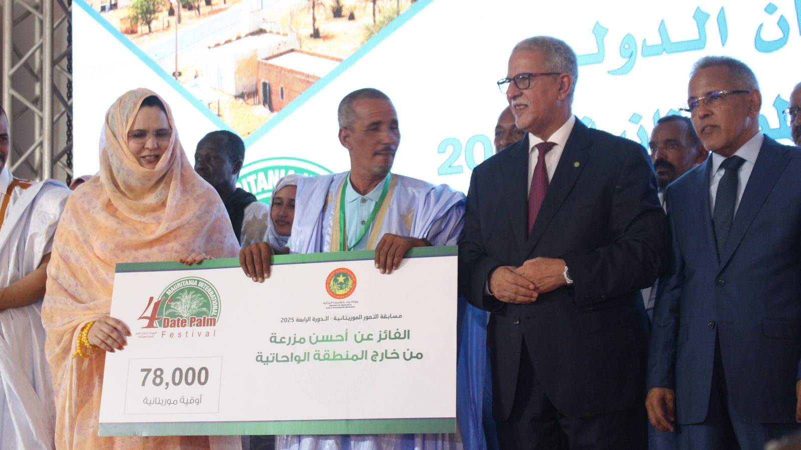 و شدد الوزير خلال حديثه على أمله أن تكون نتائج هذا المهرجان كبيرة و انعكاساته واضحةمقدما الشكر لدولة الإمارات على الدعم في مجال الزراعة و خاصة تنمية الواحات معربا أن أمله في أن يشكل هذا المهرجان فرصة للتعارف بين المنتجين في الداخل و الخارج و سانحة للتعريف بالتمور الموريتانية و فتح آفاق لتسويقها ووصولها للأسواق الدولية.