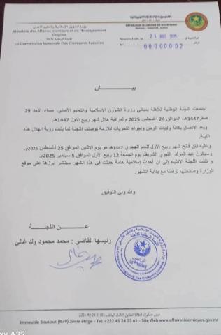 أعلنت اللجنة الوطنية لمراقبة الأهلة الإثنين الموافق 25 أغشت 2025، فاتح شهر ربيع الأول للعام الهجري 1447 هجرية.