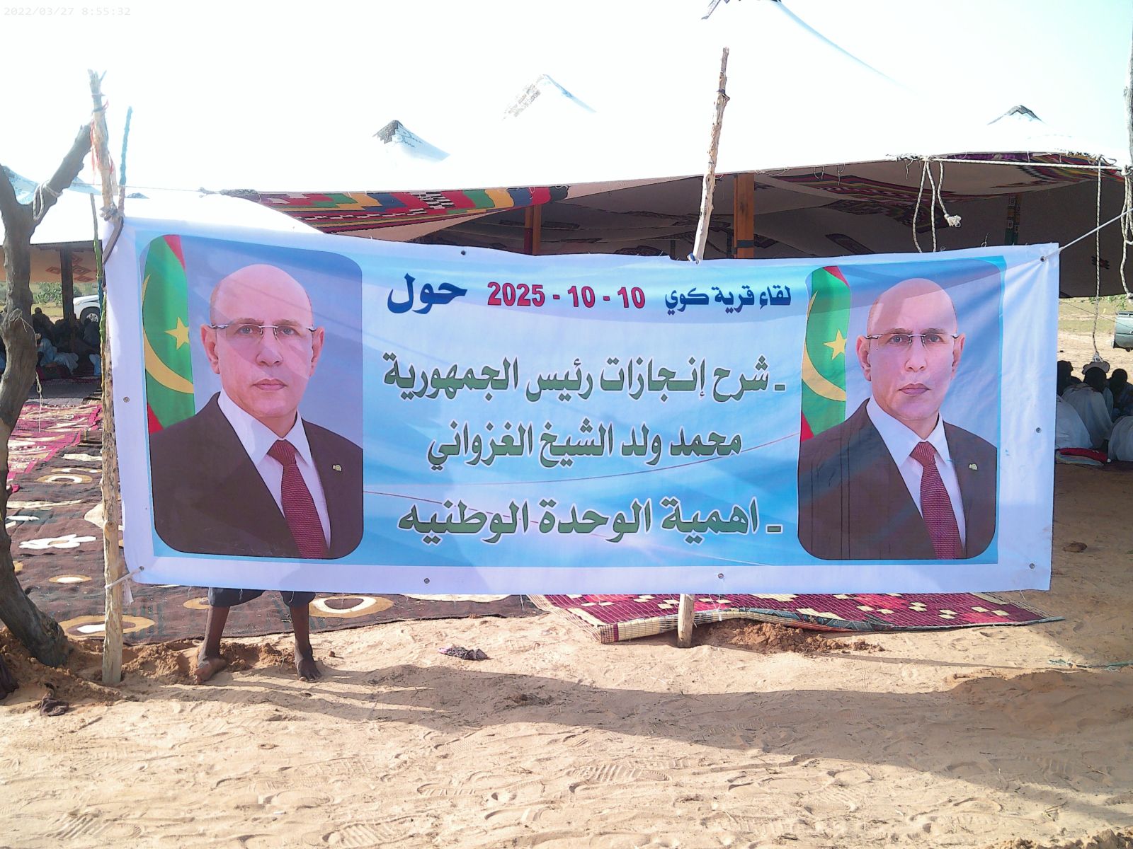 احتضنت قرية كويه التابعة لبلدية ساني بمقاطعة كنكوصه, أمس الجمعة 10 اكتوبر 2025, لقاء اجتماعيا لشرح إنجازات الرئيس محمد ولد اليخ الغزواني و تعزيز الوحدة الوطنية و ذلك بمبادرة من مجموعة أرالن بمقاطعتي كنكوصه و الطينطان.