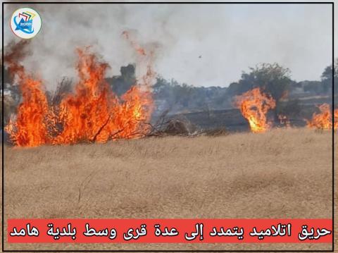 بدأ حريق شب مساء أمس قرب قرية اتلاميد وسط بلدية هامد في التوسع إلى قرى أخرى بالمنطقة (عين التيس، الهبابية ، أهل لهويدي) و سط موجة رياح تساهم بشكل كبير في انتشاره و تعيق جهود السيطرة عليه.